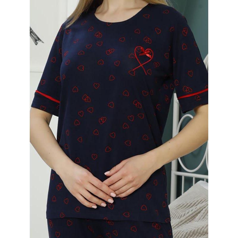 Bambu Yumuşak Kısa Kollu Lacivert Kırmızı Kalp İşlemeli Pijama Takımı, rahat bir gece geçirmek isteyen herkesin vazgeçilmez bir ürünüdür. Bu takım, yüksek kaliteli bambu kumaştan üretilmiştir ve yumuşak dokusuyla cildinize hoş bir his sağlar.