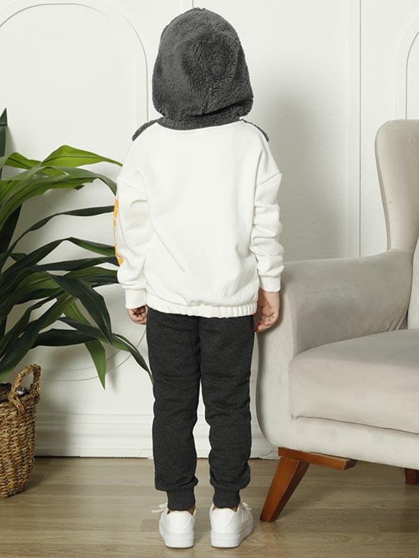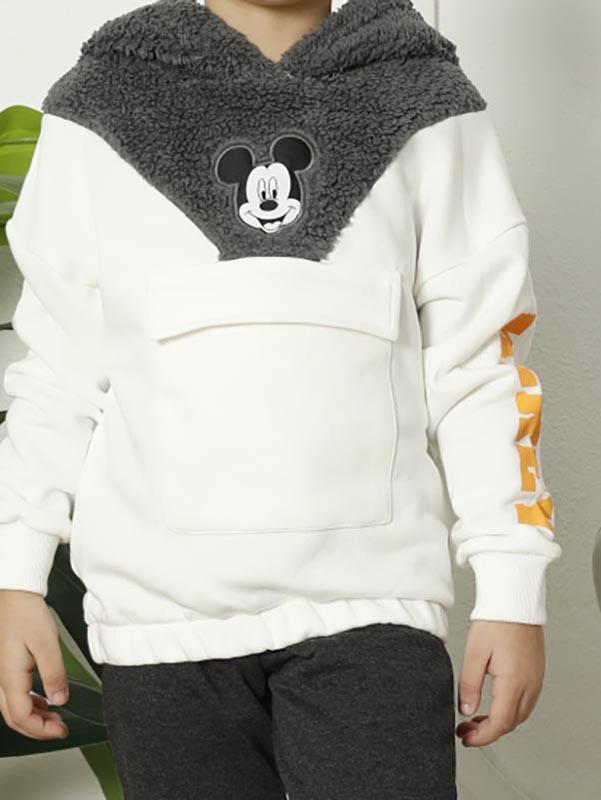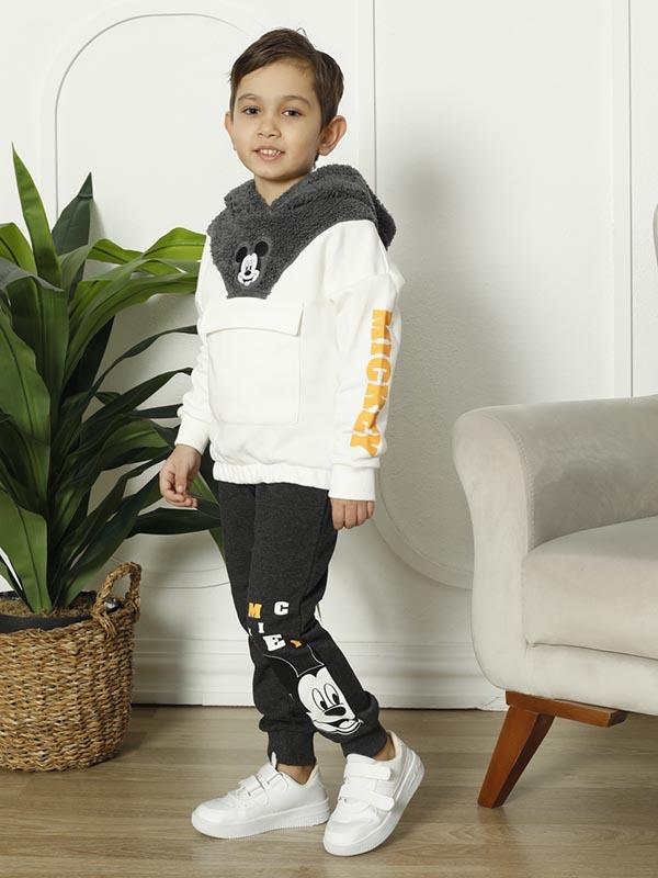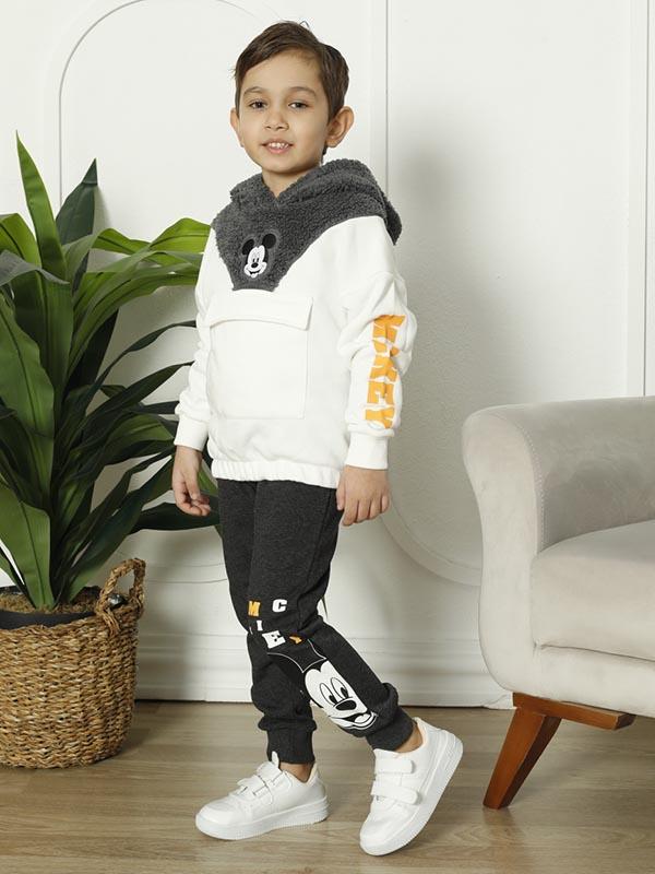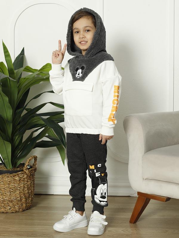 Takım, bir üst ve alt parçadan oluşmaktadır. Üst parça, şık bir hırka görünümüne sahiptir ve ön kısmında büyük bir Mickey Mouse figürü bulunur. Bu figür, takıma daha eğlenceli ve çocuksu bir hava katar. Ayrıca, kapüşonlu bir tasarıma sahip olması sayesinde çocuklarınız soğuk havalarda da sıcacık hissedecekler.
