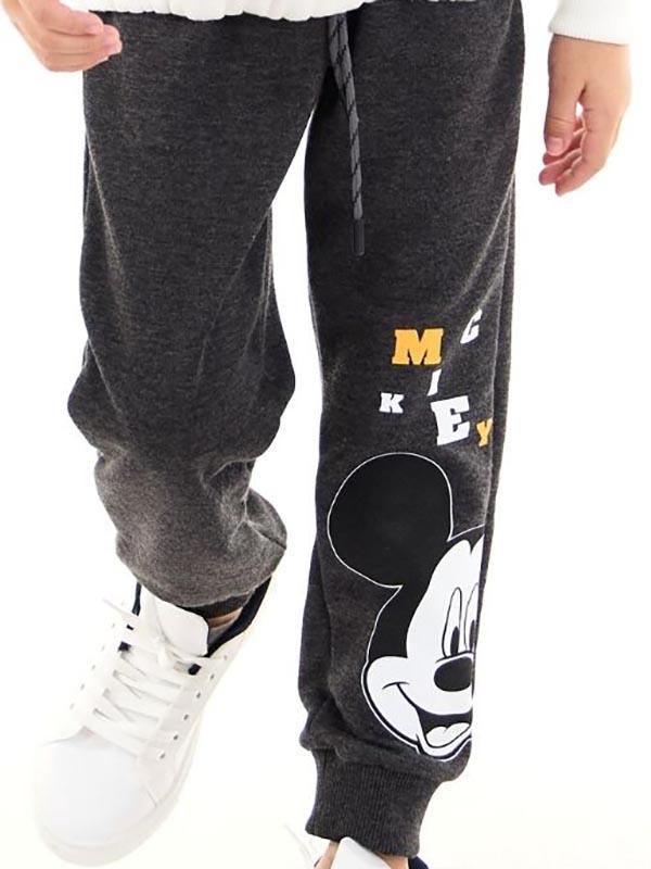 Alt parça ise, rahat bir pantolon görünümüne sahiptir. Bel kısmında lastik bant ve cırtlı ayarlanabilir bantlar bulunur, böylece takım her çocuğa uygun hale getirilebilir. Ayrıca, pantolonun diz kısmında Mickey Mouse figürünün küçük bir detayı bulunur.
