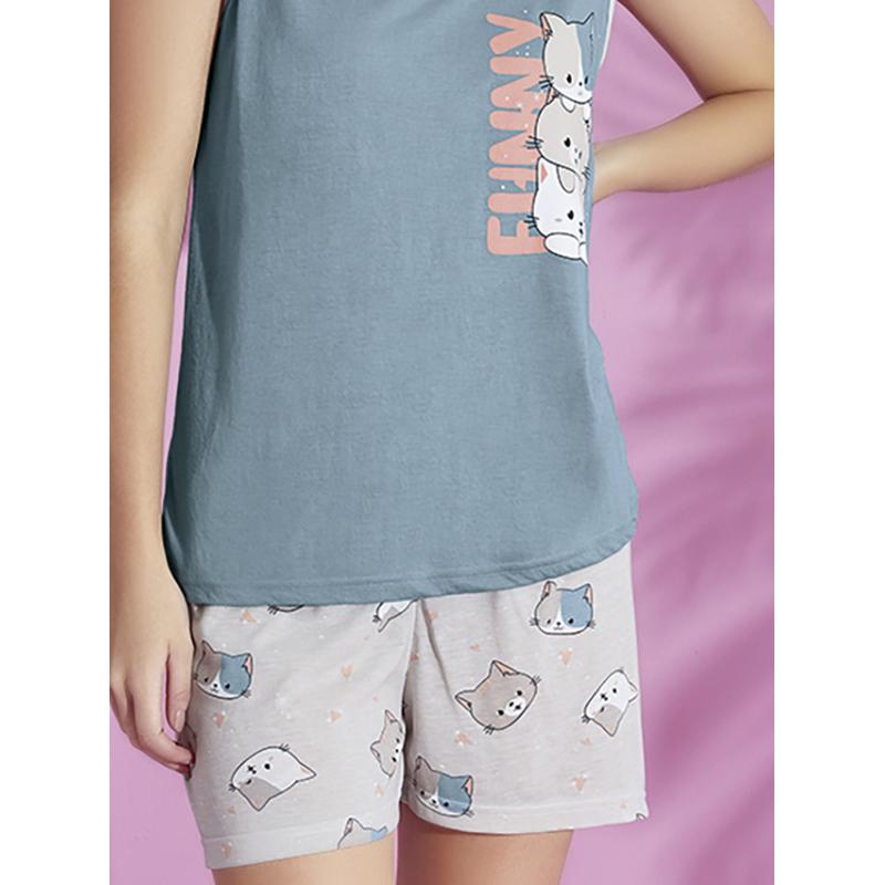 Kadın Funny Yazılı ve Kedi Figürlü Şort Takımı, yaz aylarında tarzınızı tamamlayacak kullanışlı ve eğlenceli bir üründür. Sahip olduğu komik yazılar ve sevimli kedi figürleriyle yaz kombinlerinize renk katacak bu takım, kadınların dolaplarının vazgeçilmez parçası olmaya aday.