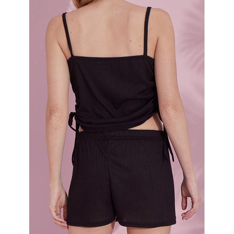 Bu yaz ve kış aylarında gardıroplarınızda bir numaralı tercih olacak Kadın İp Askılı Büzgülü Crop Şort Takımı Siyah, her ortama uyum sağlayabilecek çok yönlü bir kıyafet olarak kullanabileceğiniz bir seçim olacak. Siz de bu en trend crop şort takımını hemen sepetinize ekleyin ve yaz aylarında modanın bir adım önde olun!