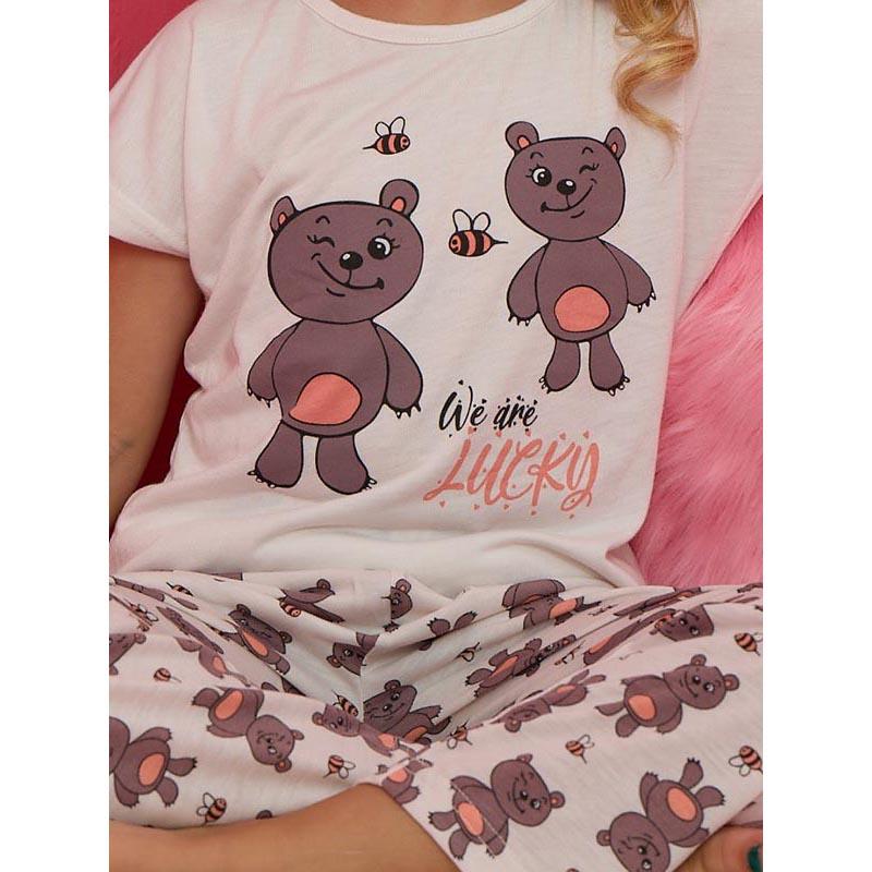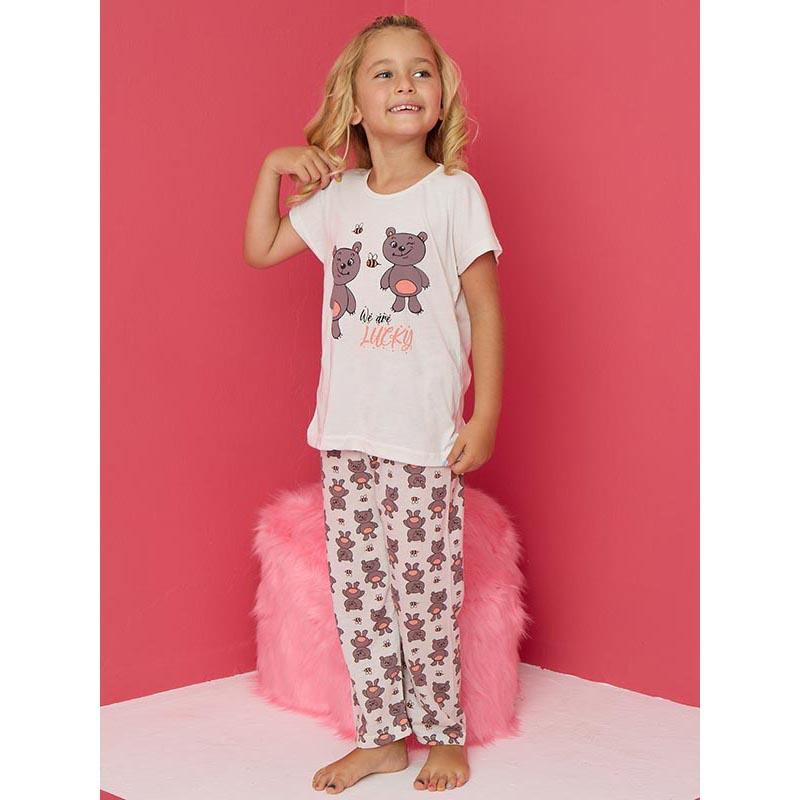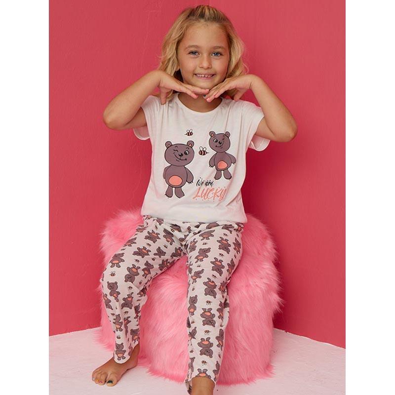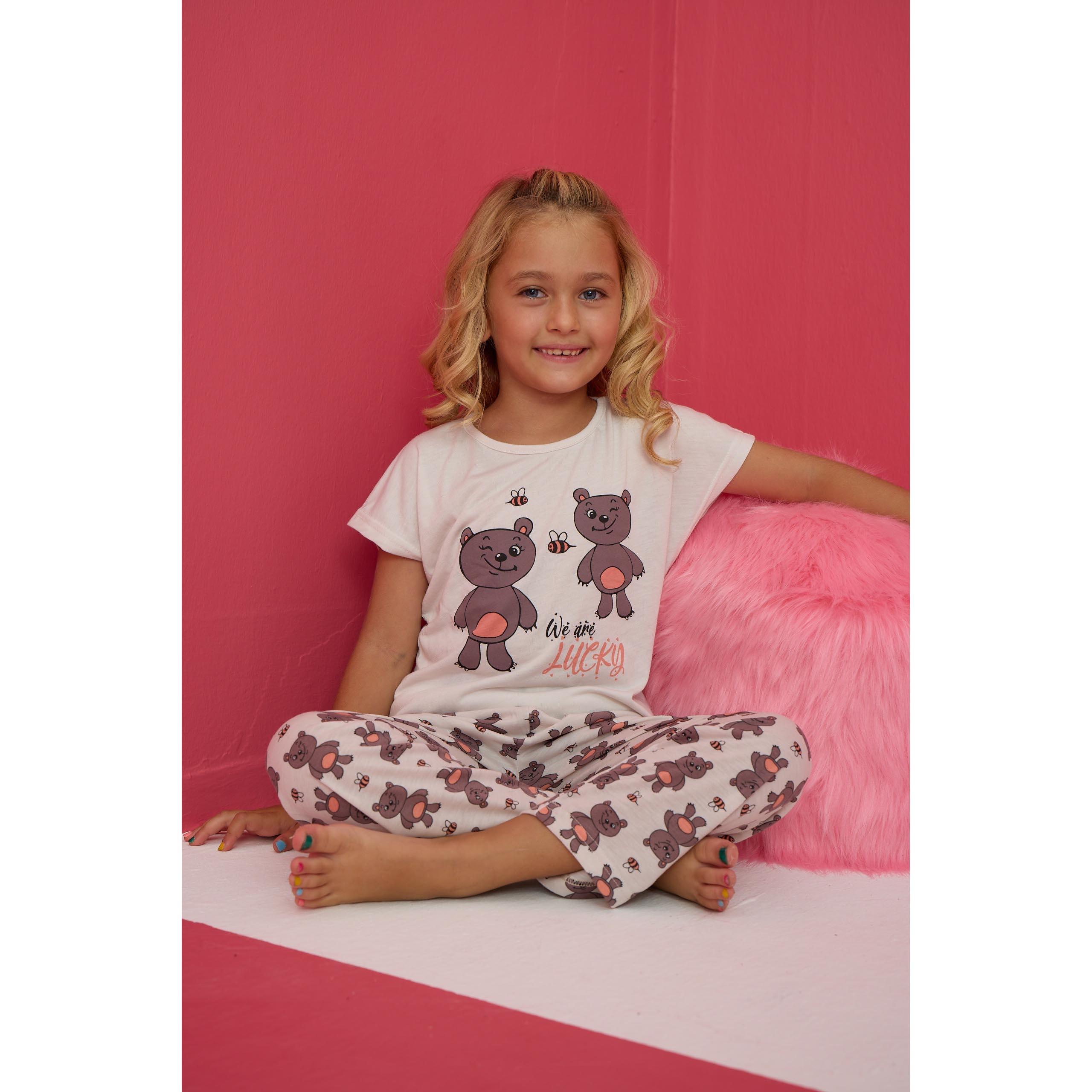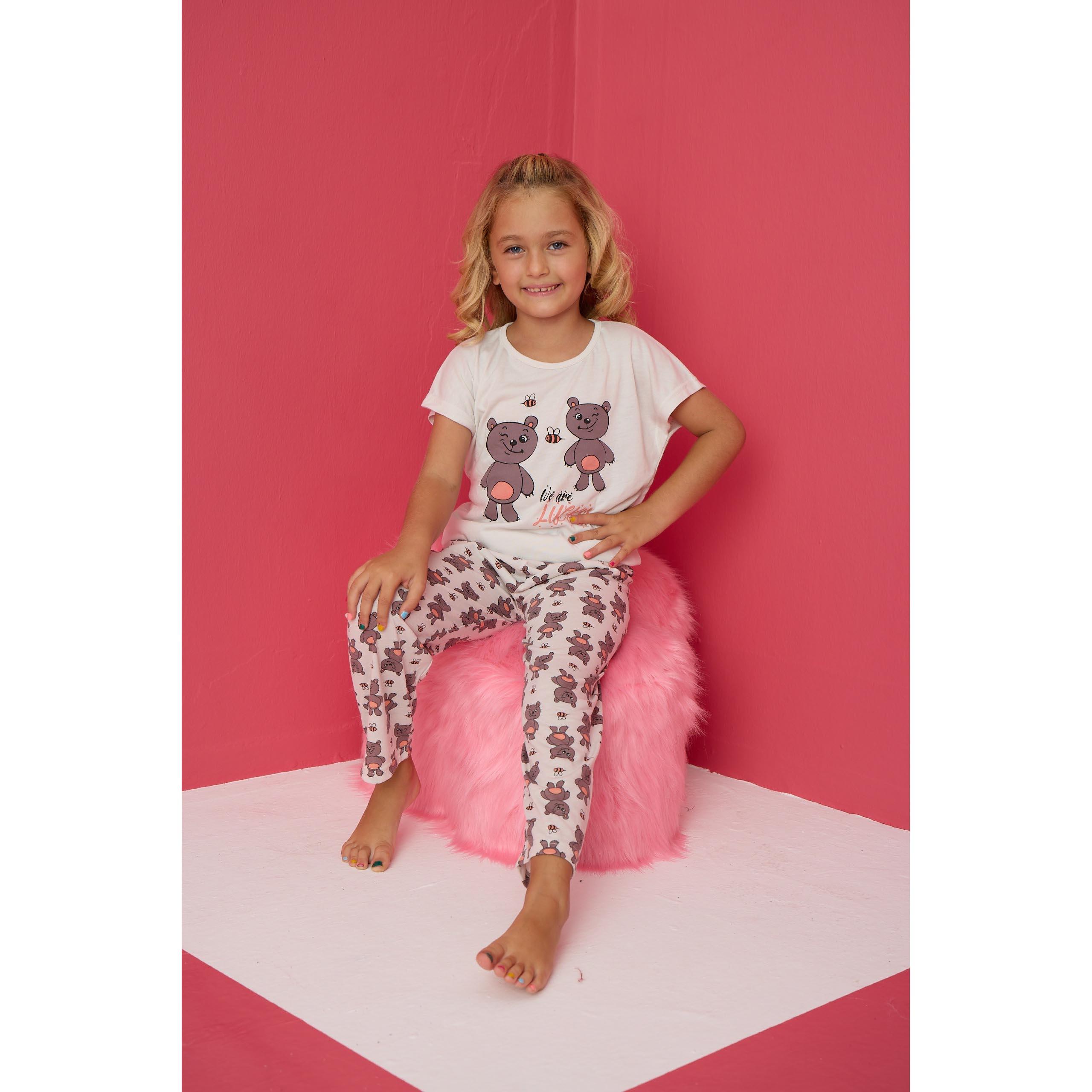 Kız Çocuk Yumuşak Ayıcık Figürlü Pamuklu Süprem Penye Takım
