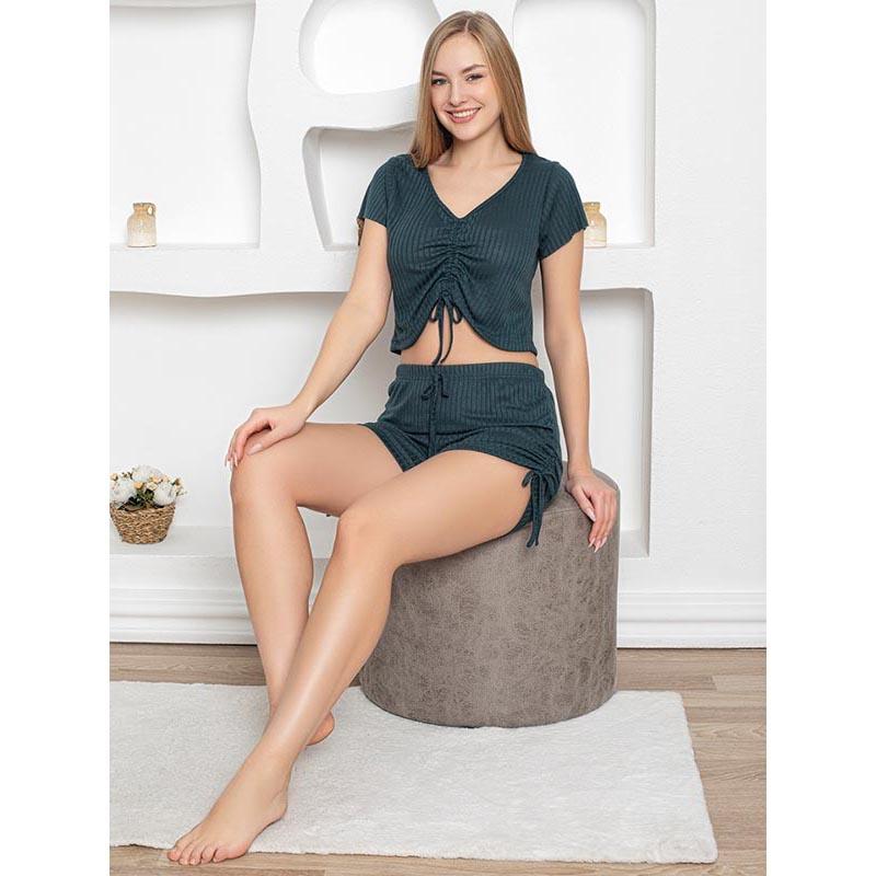 Kadın Büzgülü Cute Şort Takımı Zümrüt Yeşil, yaratıcı tasarımı ve şık stiliyle siz kadınların gözdesi olmaya aday! Bu çarpıcı takım, zümrüt yeşil rengi ile çevrenizdeki herkesin dikkatini çekecek. Şıklığın yanı sıra konforu da düşünen tasarımcılarımız, bu takımın her anınızda rahat bir kullanım sağlamasını hedeflediler.