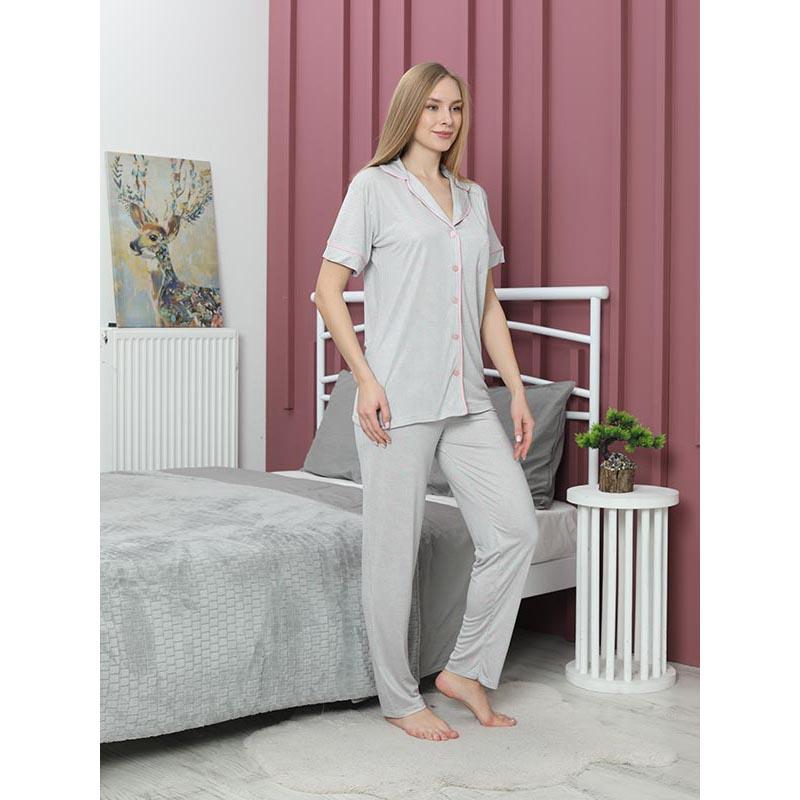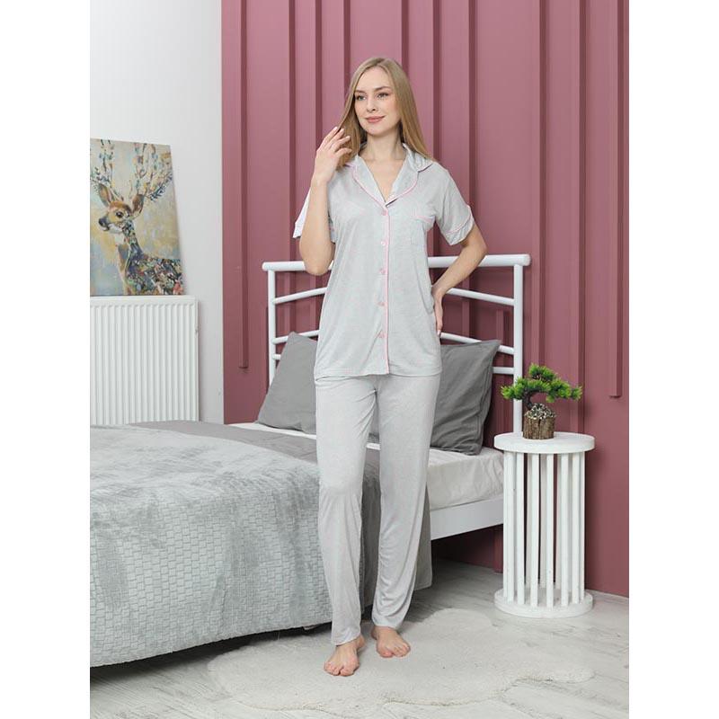 Premium Bambu Yumuşak Kısa Kollu Arabiyeli Düğmeli Pijama Takımı Gri, şık ve modern bir tasarıma sahiptir. Üst kısmı, zarif arabiye deseniyle süslenmiştir ve göz alıcı düğmeleriyle şık bir detay katmıştır. Şort kısmı ise, kısa kesimiyle hem rahat hem de şık bir görünüm sunar. Gri renk seçeneği, her yaşa ve her tarza uyum sağlayacak şekilde tasarlanmıştır.